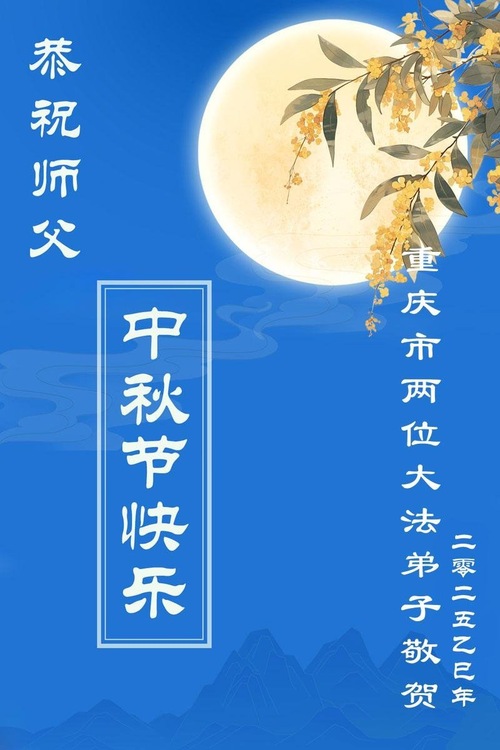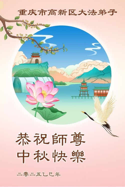 ممارسو الفالون دافا من تشونغتشينغ يتقدّمون بأطيب التهنئات للمعلّم لي هونغجي بمناسبة عيد منتصف الخريف، متمنّين له عيدًا سعيدًا!