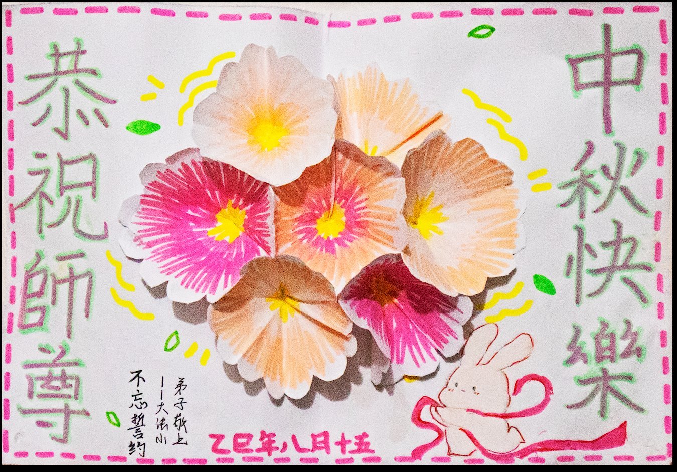 (Minghui.org) بعد أن عرّف المعلّم لي هونغجي العالم على الفالون دافا عام ١٩٩٢، مارسها الناس من مختلف شرائح المجتمع. كما اقتدى العديد من الأطفال بآبائهم وأصبحوا أيضاً ممارسين للدافا. اكتسبوا الحكمة وتعلموا التحلّي بالصلاح باتباع قيم الحقّ ـ الرّحمة ـ الصّبر. وفي هذه المناسبة الخاصة، مناسبة عيد منتصف الخريف لعام ٢٠٢٥، وجّه العديد من هؤلاء الممارسين الشباب من أعماق قلوبهم بطاقة تهنئة إلى المعلّم لي، متمنين له عيدًا سعيدًا.