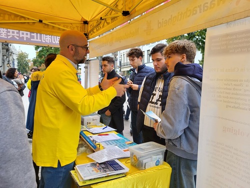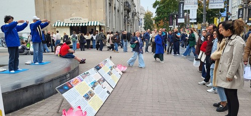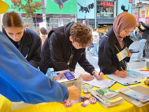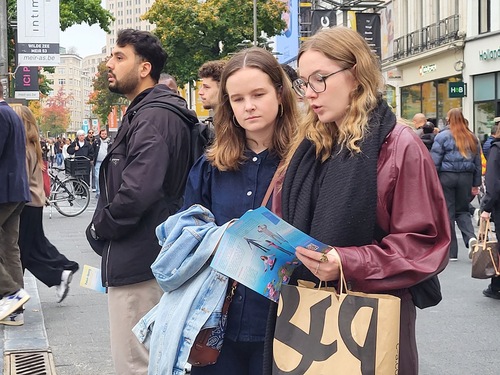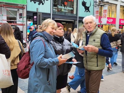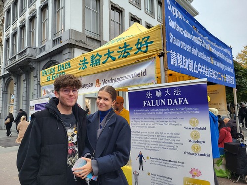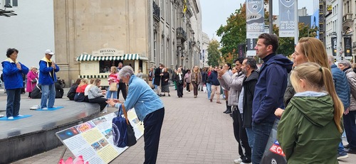 (Minghui.org) قدّم ممارسو الفالون دافا معلوماتٍ ومنشورات عن اضطهاد الحزب الشيوعي الصيني، وأبلغوا الناس بذلك خلال فعاليةٍ نُظّمت في منطقة مير التجارية في أنتويرب، بلجيكا، في ١١ أكتوبر ٢٠٢٥. توقّف العديد من المارة للتعرّف على الفالون دافا، وأعربوا عن دعمهم لإنهاء الاضطهاد.
