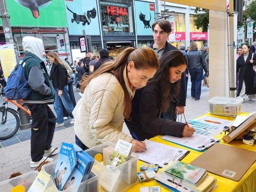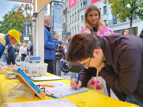 تويقع الناس على عريضةٍ تطالب بإنهاء اضطهاد الحزب الشيوعي الصيني للفالون دافا.