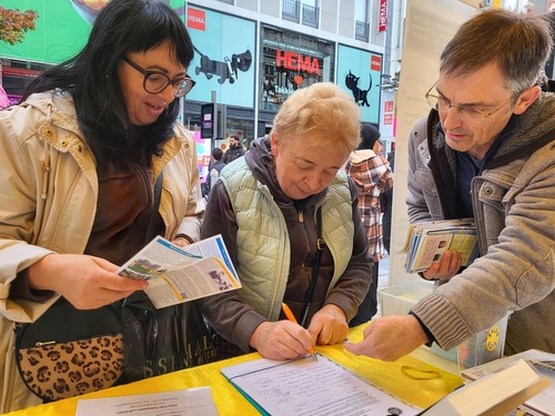 يدعم سكان أنتويرب نداء ممارسي الفالون دافا لوقف اضطهاد الحزب الشيوعي الصيني.