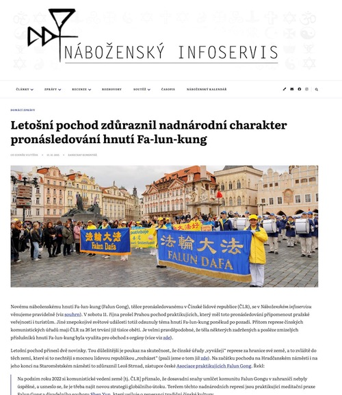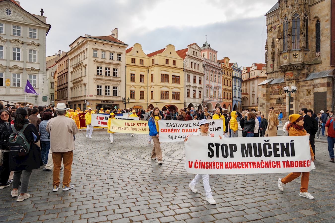 يقول التقرير: "في يوم السبت، ١١ أكتوبر، جابت مسيرةٌ لممارسي الفالون غونغ شوارع براغ لتذكير سكّان براغ والسياح بهذا الاضطهاد. وقد سلّطت أحداثٌ عالميّةٌ أخرى الضوء على موضوع حركة الفالون غونغ والخلفية المقلقة لما تتعرّض له. في الوقت نفسه، أسفر قمع السلطات الشيوعية الصينية عن مقتل آلافٍ من أبناء جمهورية الصين الشعبية خلال ٢٦ عامًا."