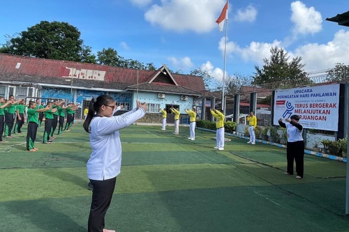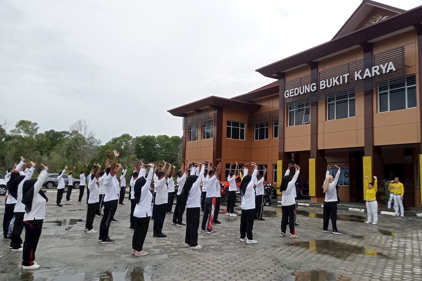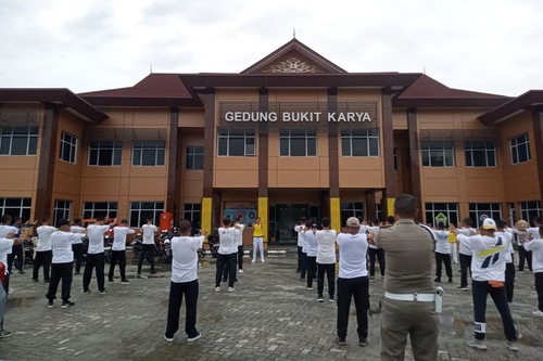 مسؤولو وكالة النظام العام في مقاطعة كاريمون، إندونيسيا، يتعلّمون تمارين الفالون دافا.