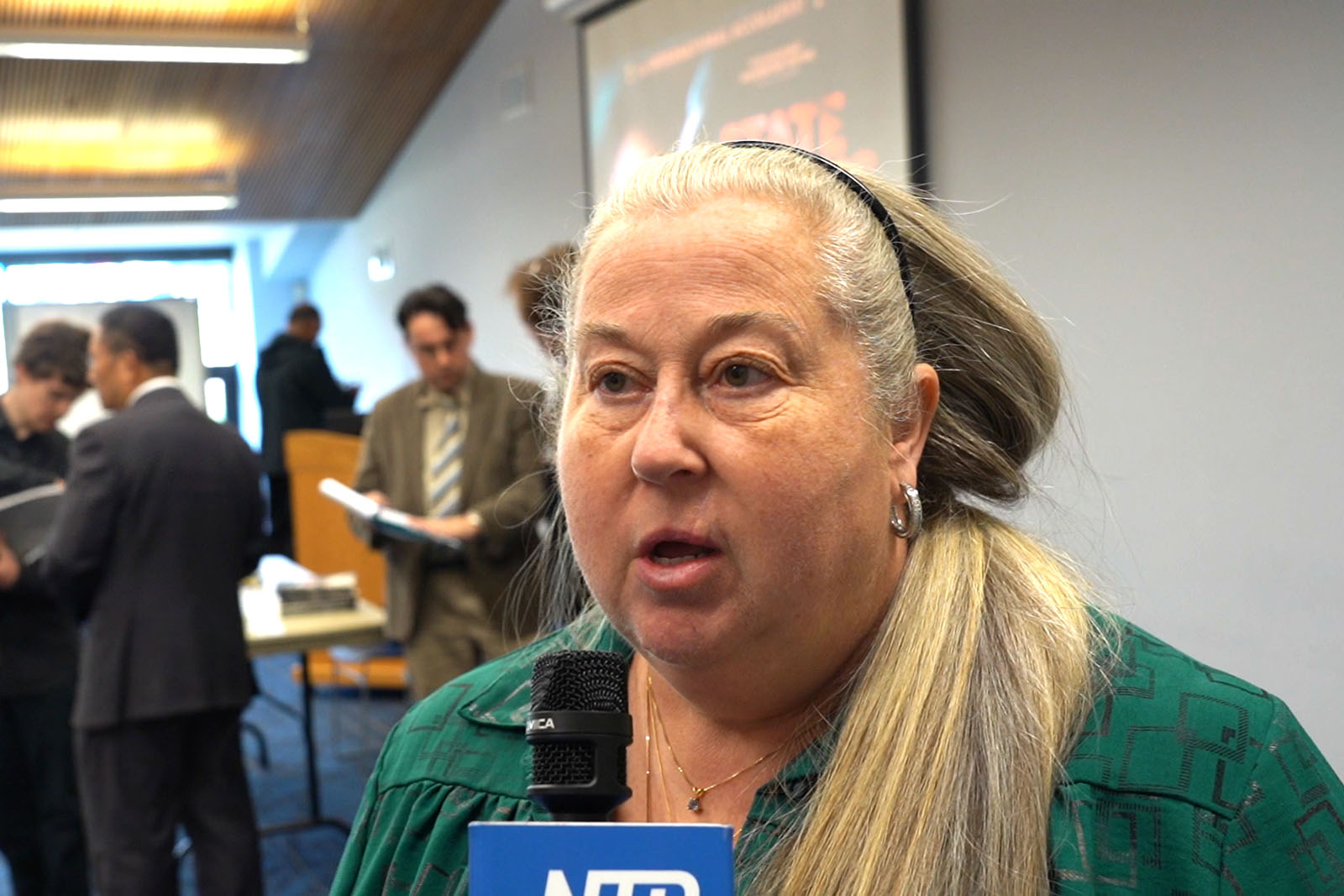 ميشيل د. ترويت، مشرفة بلدة إيست غوشن في مقاطعة تشيستر، خلال عرض الفيلم في ١ نوفمبر ٢٠٢٥.