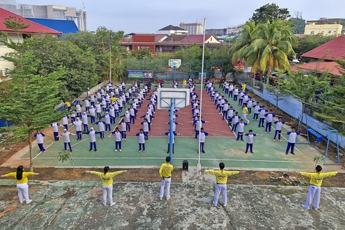 تمّ تنظيم العرض التقديمي بالتعاون بين إدارة المدرسة وجمعية الفالون دافا المحليّة. حضر الجلسة التمهيديّة أكثر من ١٠٠ مدرّس وطالب. ألقى كوكوه إيكو براسيتيو، مدير المدرسة، كلمةً بعد أن تجمّع الجميع في تمام الساعة ٧:١٥ صباحًا، أكّد فيها على أهميّة غرس القيم الأخلاقيّة منذ الصغر، وأشاد بتمارين الفالون دافا كوسيلة إيجابيّة لتحسين أخلاق الطلاب والحفاظ على صحة الجيل الناشئ الجسديّة.