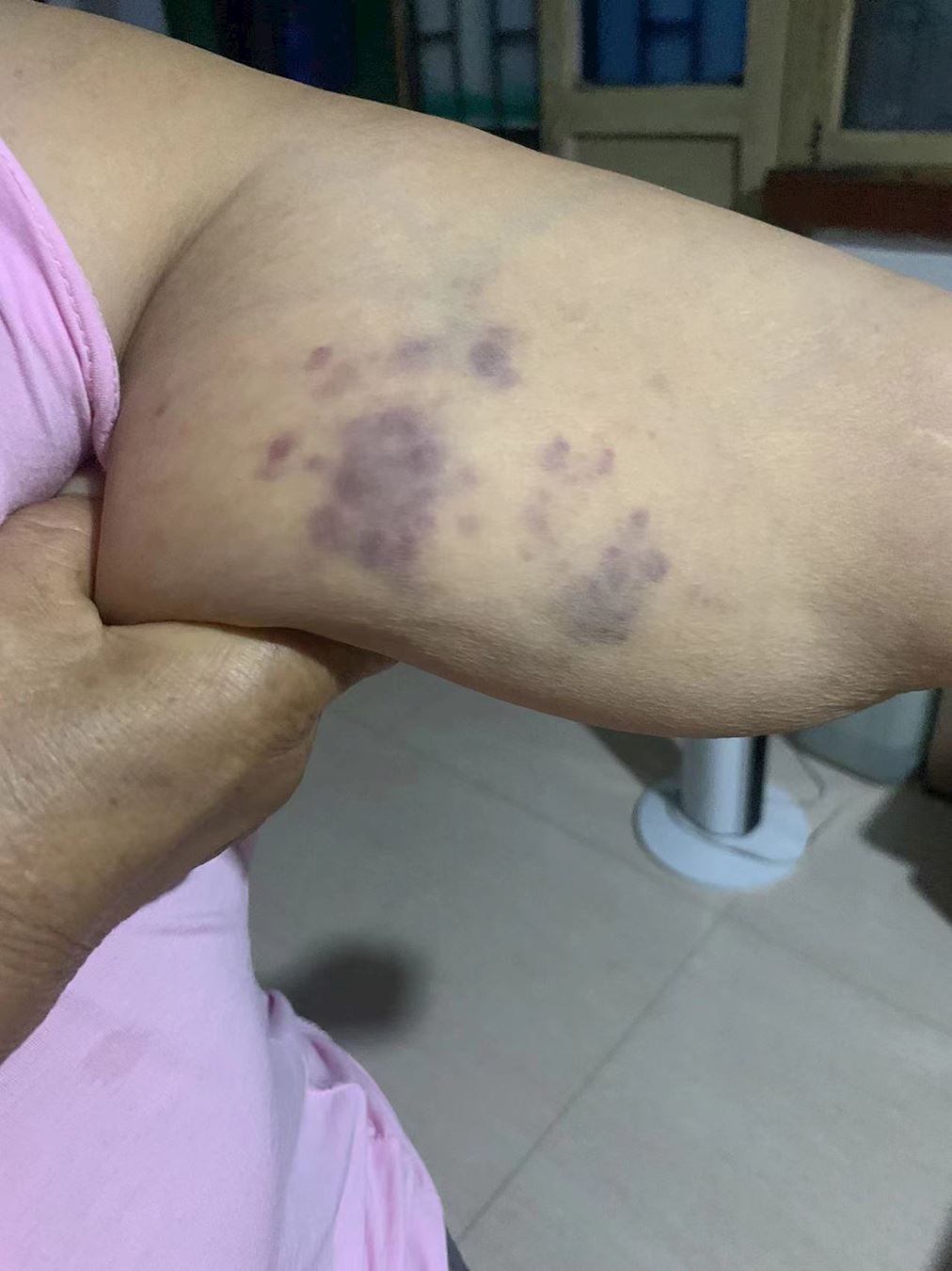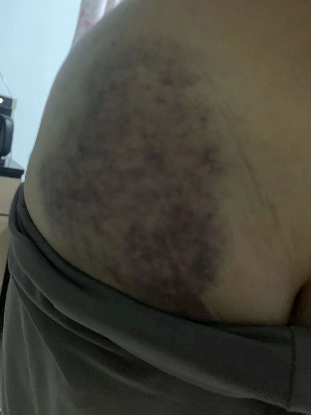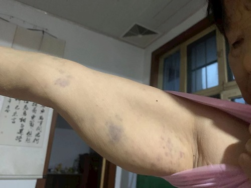 كانت ذراعا السيدة تشانغ مُصابتين بكدمات نتيجة عنف الشرطة أثناء اعتقالها.