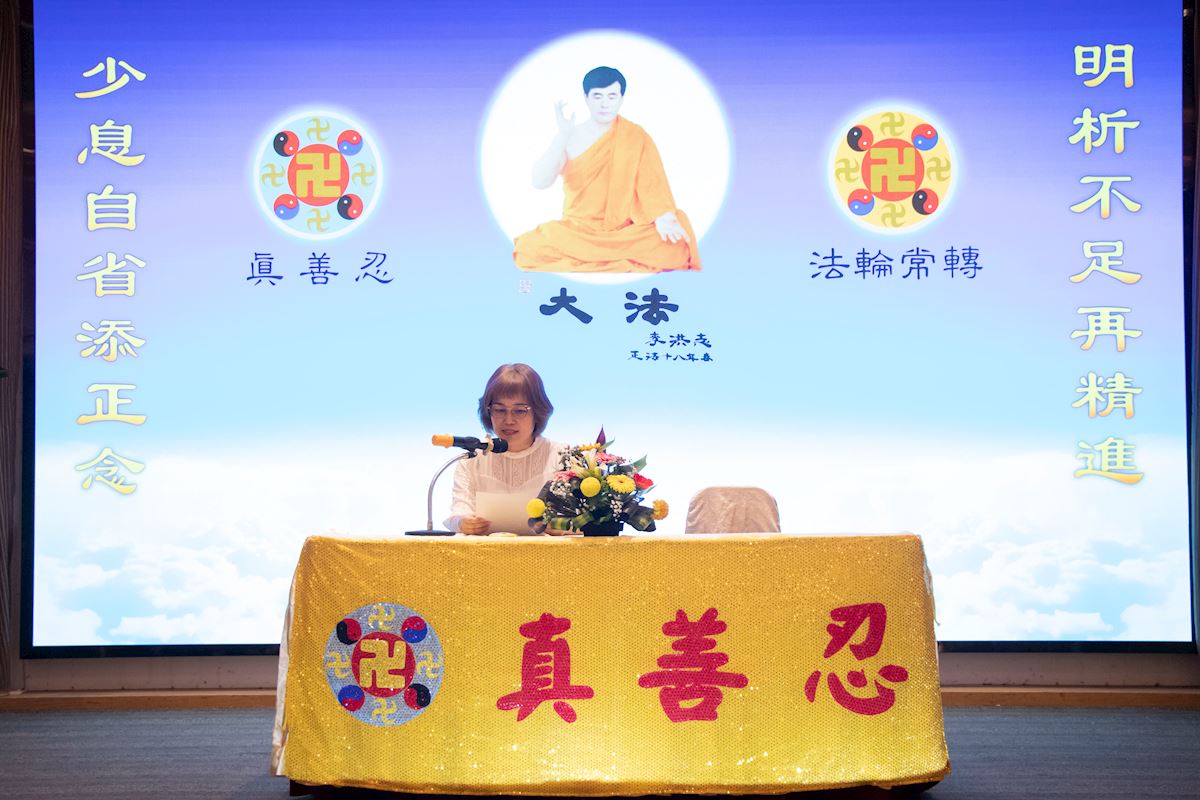 قدّم واحد وعشرون ممارسًا عروضًا حول تجاربهم في اتباع مبادئ الفالون دافا المتمثلة في الحقّ ـ الرّحمة ـ الصّبر، والنظر إلى داخل ذواتهم في المنزل والعمل وأثناء المشاركة في مشاريع توضيح الحقيقة. وأكّدوا إيمانهم بـالمعلّم والفا، وتغلّبهم على الصعوبات بالأفكار المستقيمة، وانضمامهم مع ممارسين آخرين لمساعدة المعلّم في إنقاذ الكائنات الواعية.