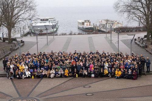 (Minghui.org) مع اقتراب العام الجديد، اجتمع ممارسو الفالون دافا في ألمانيا والمنطقة الناطقة بالألمانيّة في سويسرا في برلين، عاصمة ألمانيا، لتهنئة المعلّم لي هونغجي، مؤسّس الفالون دافا، بالعام الجديد. وأعربوا عن امتنانهم للمعلّم لإرشاده ممارسي الفالون دافا والناس في هذا العالم إلى طريق العودة إلى ذواتهم الحقيقيّة، ولجهوده الجبارة والتحدّيات التي تحمّلها في سبيل إنقاذ الكائنات الواعية. وقالوا إنّ الكلمات تعجز عن التعبير عن شكرهم للمعلّم على فضله ورحمته.