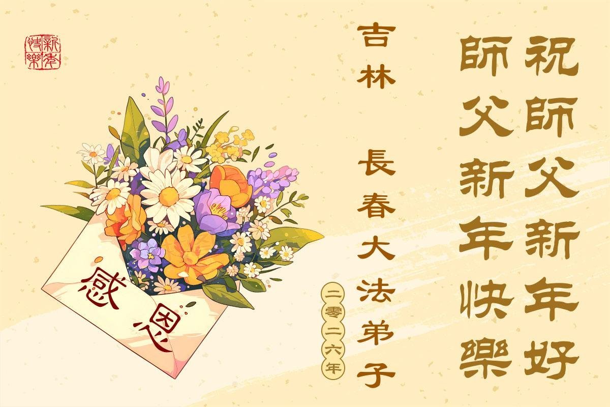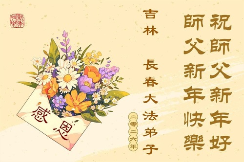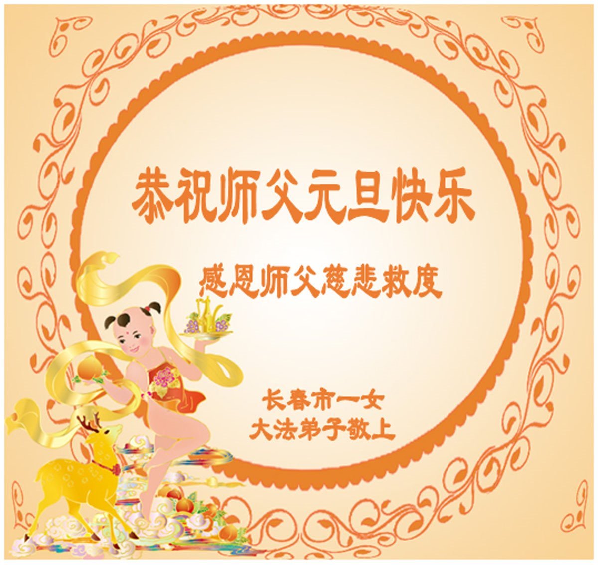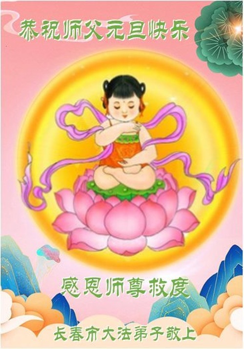ممارسو الفالون دافا من مدينة تشانغتشون يتمنّون للمعلّم لي هونغجي عاماً جديداً سعيداً (١١١ بطاقة تهنئة)