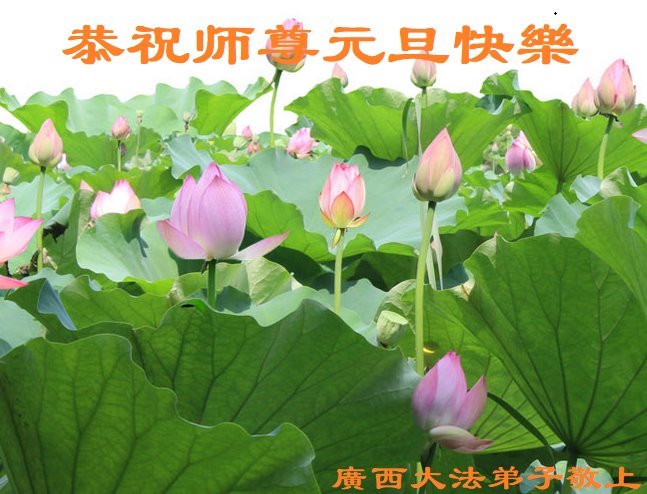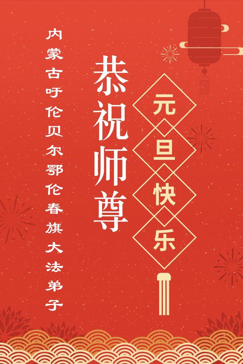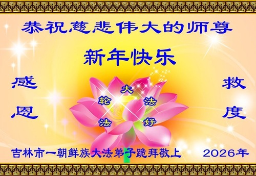 كتب ممارسو الفالون دافا في منغوليا الداخليّة: "جميع ممارسي الفالون دافا من منغوليا الداخليّة يتقدّمون بأسمى آيات الاحترام والتقدير للمعلّم! عام سعيد، أيّها المعلّم! إنّنا نبذل قصارى جهدنا لإنقاذ الناس. لقد استلهم المنغوليون ذوو القلوب الرحيمة من معجزات الفالون دافا، وبدأ بعضهم بممارسة هذه التعاليم. لم يعودوا يصدّقون دعاية النظام الشيوعي الصيني. نعرب عن امتناننا للمعلّم لإنقاذه لنا! نأمل أن يعود المعلّم إلى الصين قريبًا، وإلى منغوليا الداخليّة يومًا ما."