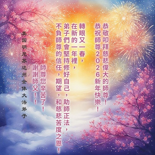 يتقدّم أحد ممارسي الفالون دافا في ولاية مينيسوتا الأمريكيّة بأحرّ التهاني إلى المعلّم الجليل والرحيم بمناسبة العام الجديد!