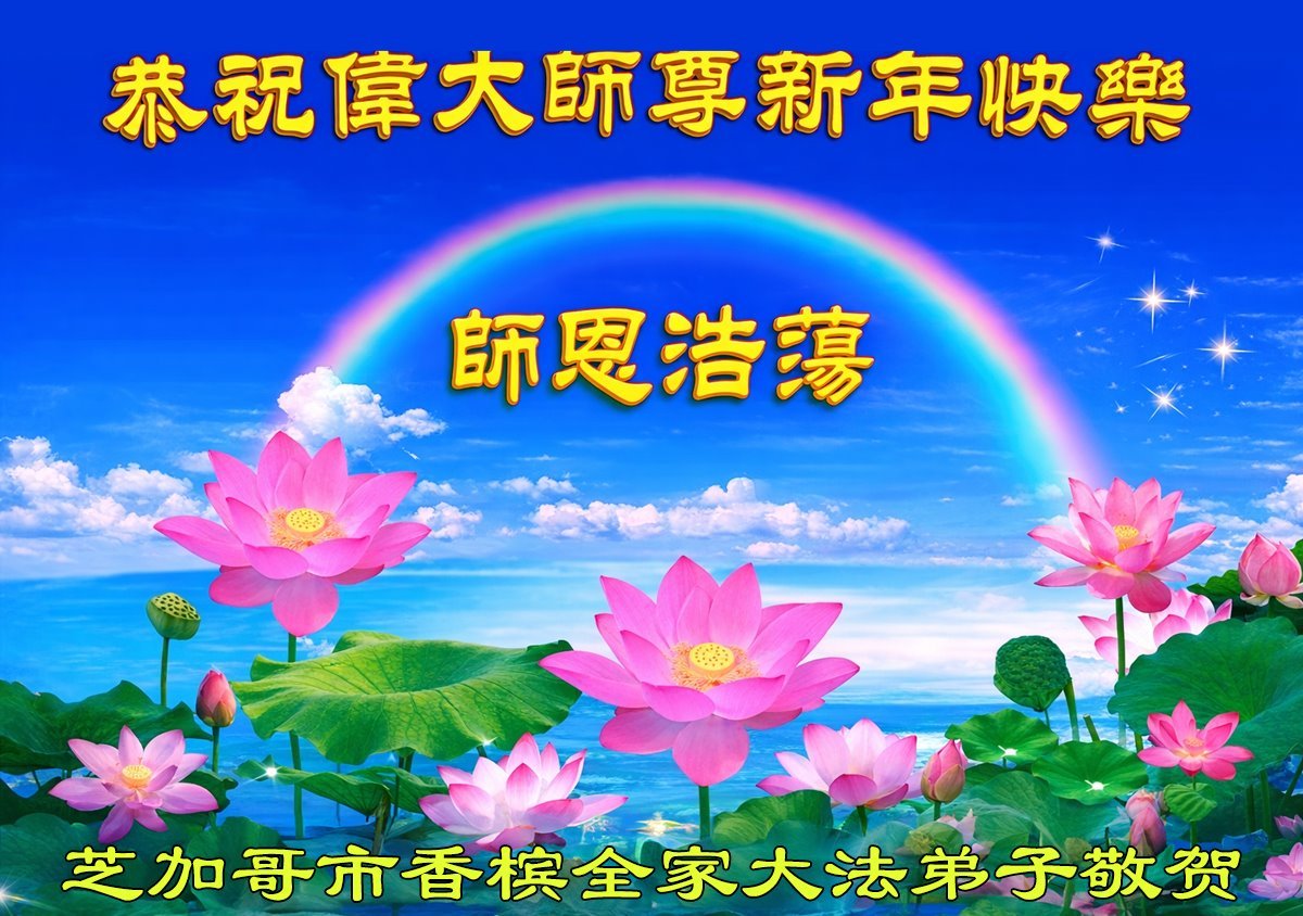 يتقدّم ممارسو الفالون دافا في شيكاغو بأحرّ التهاني إلى المعلّم الجليل والرحيم بمناسبة العام الجديد!