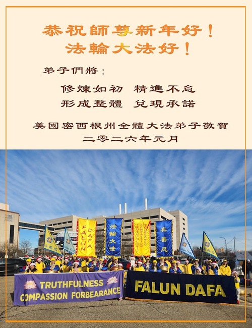 يتقدّم ممارسو الفالون دافا في ولاية ميشيغان الأمريكية بأحرّ التهاني إلى المعلّم الجليل والرّحيم بمناسبة العام الجديد!