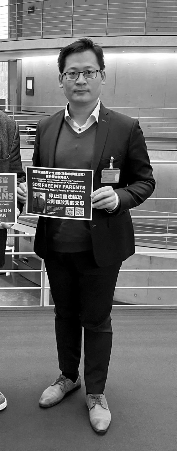 يشارك دينغ ليبين في نشاط بصفته المدير الأوروبي للمنظّمة العالميّة للتحقيق في اضطهاد الفالون غونغ.