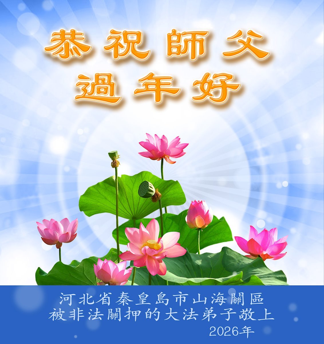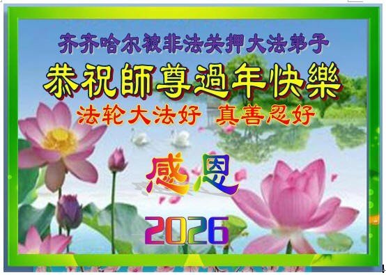 بمناسبة رأس السنة الصينيّة الجديدة (١٧ فبراير)، وجّه الممارسون الذين ما زالوا محتجزين في سجون الصين ومراكز الاعتقال ومراكز غسل الدماغ أطيب تمّنياتهم إلى المعلّم لي بمناسبة العام الجديد، وتعهّدوا بالثبات على إيمانهم والوفاء بمهمّتهم.